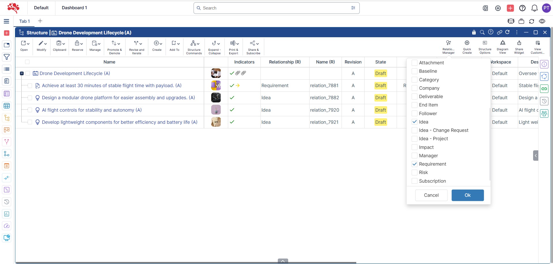 Connect products, BOMs, ideas, issues, and lessons to optimize requirements, reduce risks, and drive innovation
