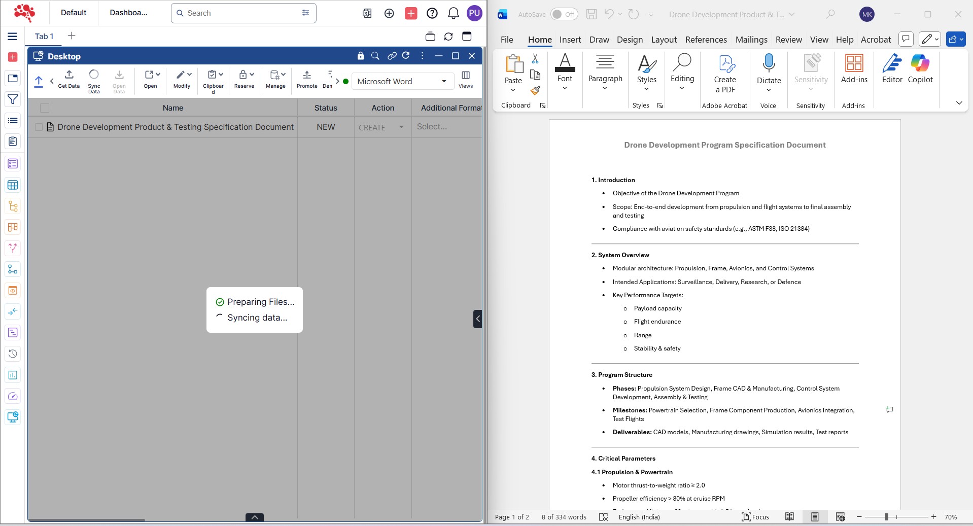 5. Click “Sync Data” to upload the document. Nora IPLM will prepare and synchronize the document from Word to the platform.