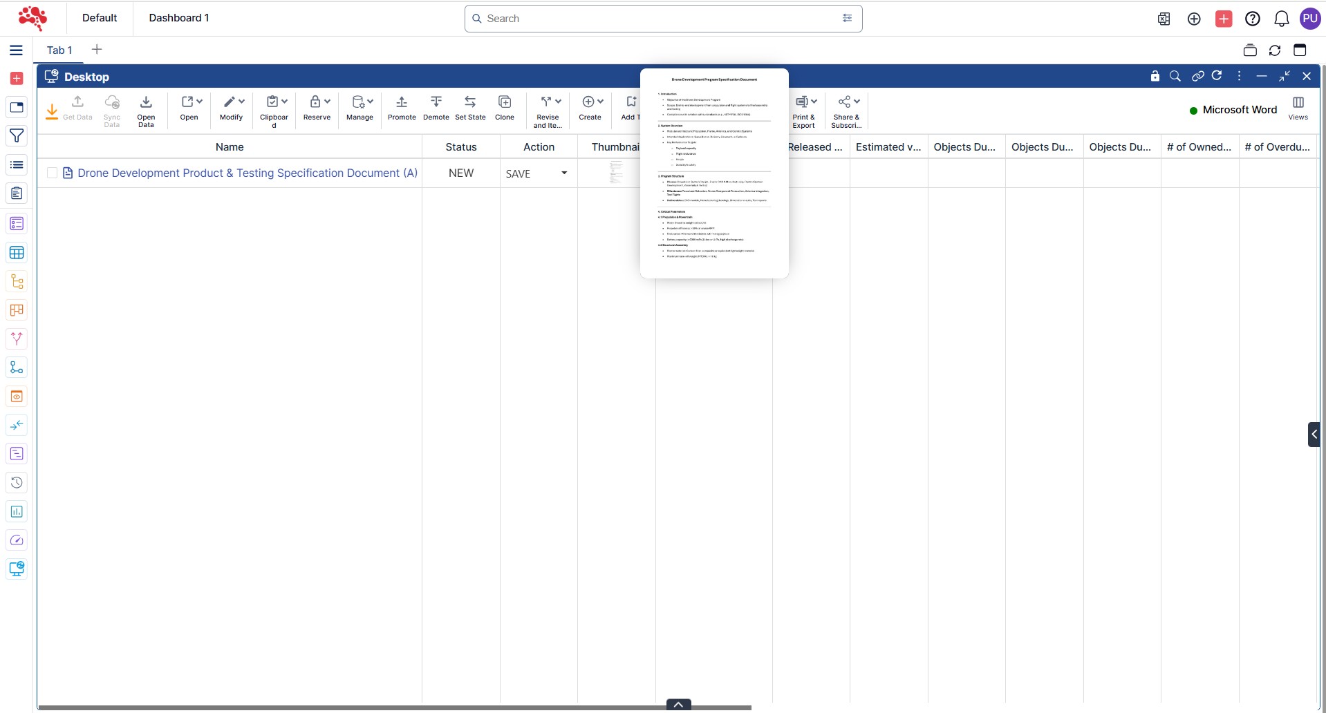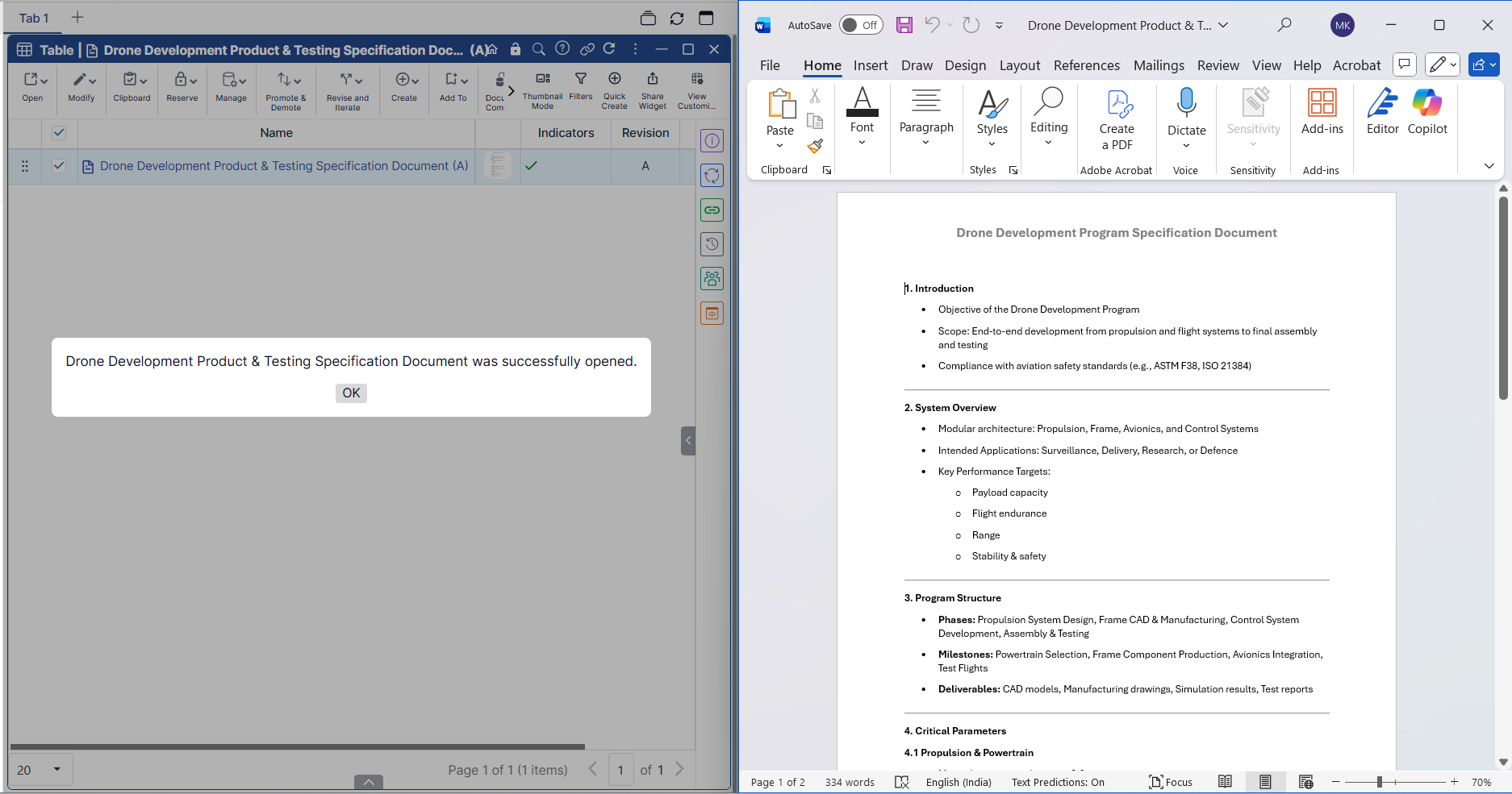 6. The document has been successfully synced from Microsoft Word to Nora IPLM.