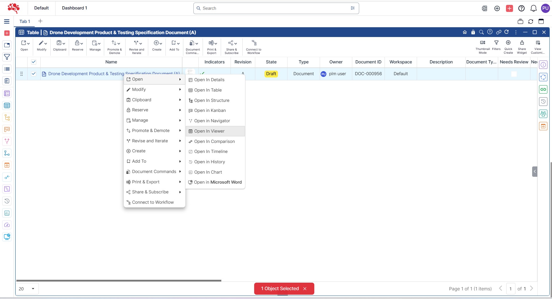 12. To open a document directly in Microsoft Word from the platform, right-click the object and select “Open in Microsoft Word”. This command updates automatically based on the file type of the document. For example, if the document includes an Excel file, the option will appear as “Open in Microsoft Excel”.
