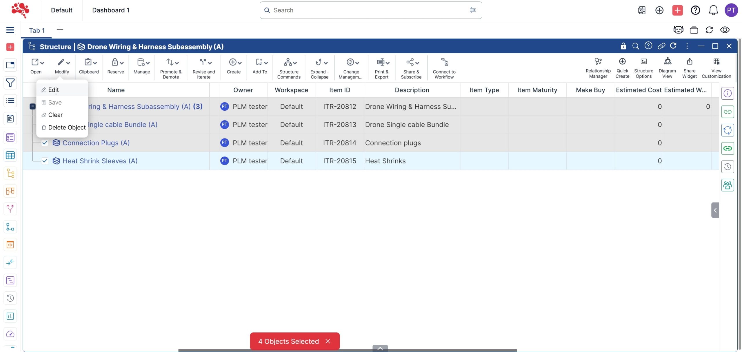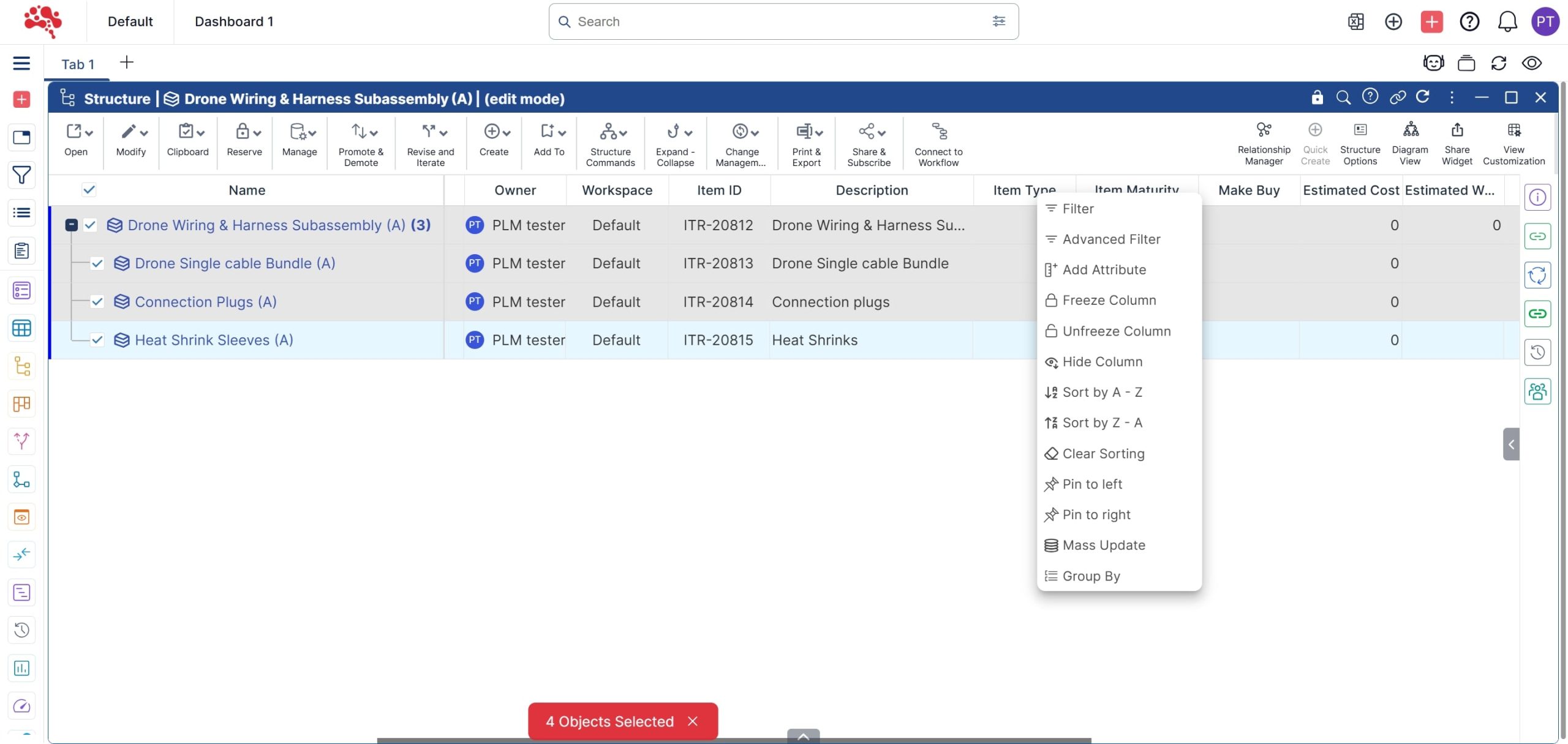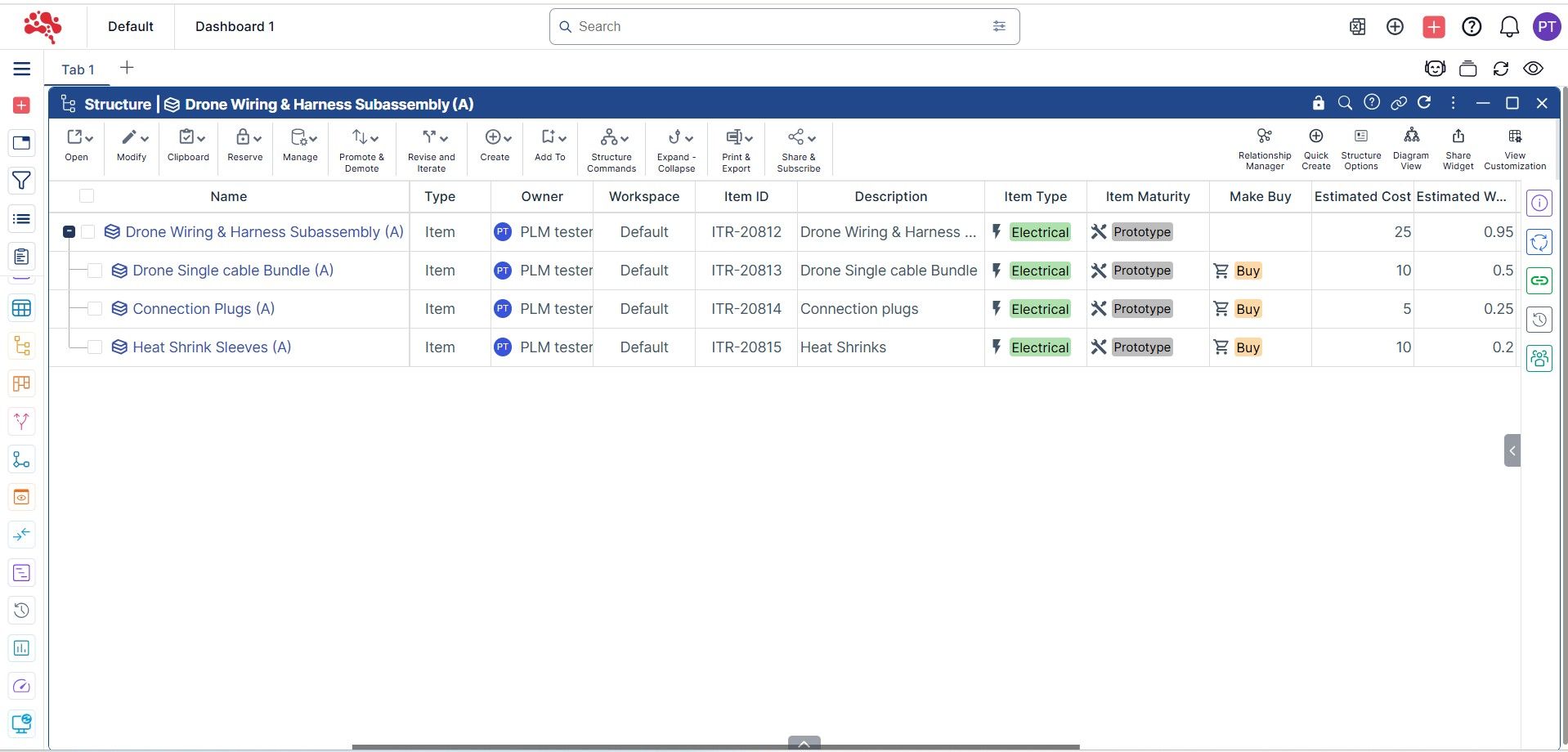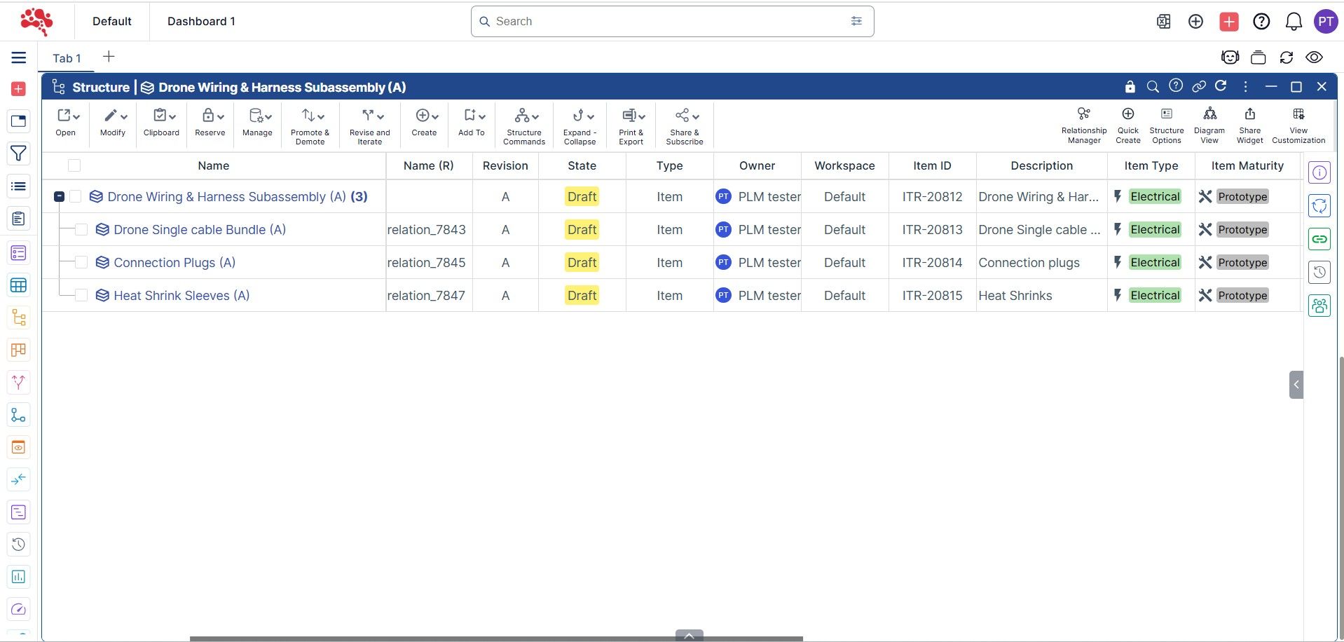 By creating new items within the integrated structure, users can manage additional components, accessories, or configuration parts that may not exist in the original CAD assembly. This ensures that the PLM structure remains complete, up to date, and ready for downstream processes such as BOM generation, change management, and manufacturing planning.
