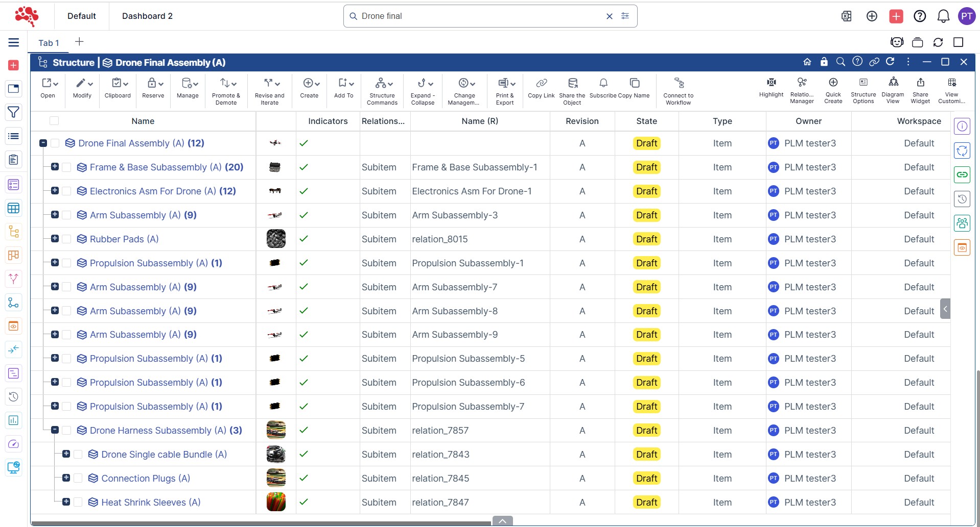 - Open the “Drone Final Assembly” in the Structure Widget.