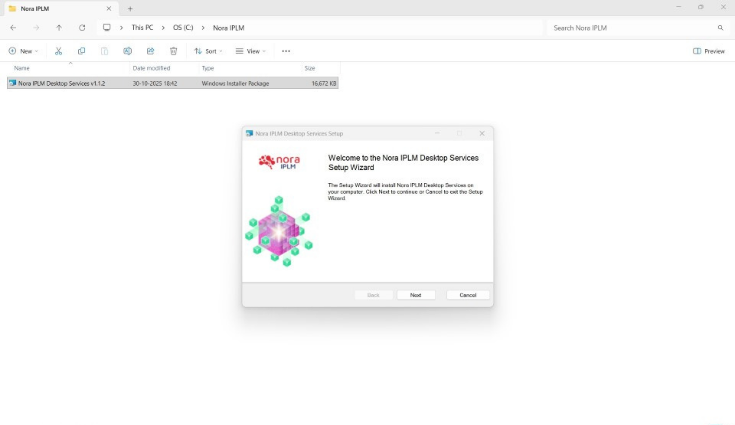 Follow these steps to download and install the Nora IPLM Desktop Services application on your system. This tool enables seamless CAD integration, file syncing, and secure communication with the PLM platform.