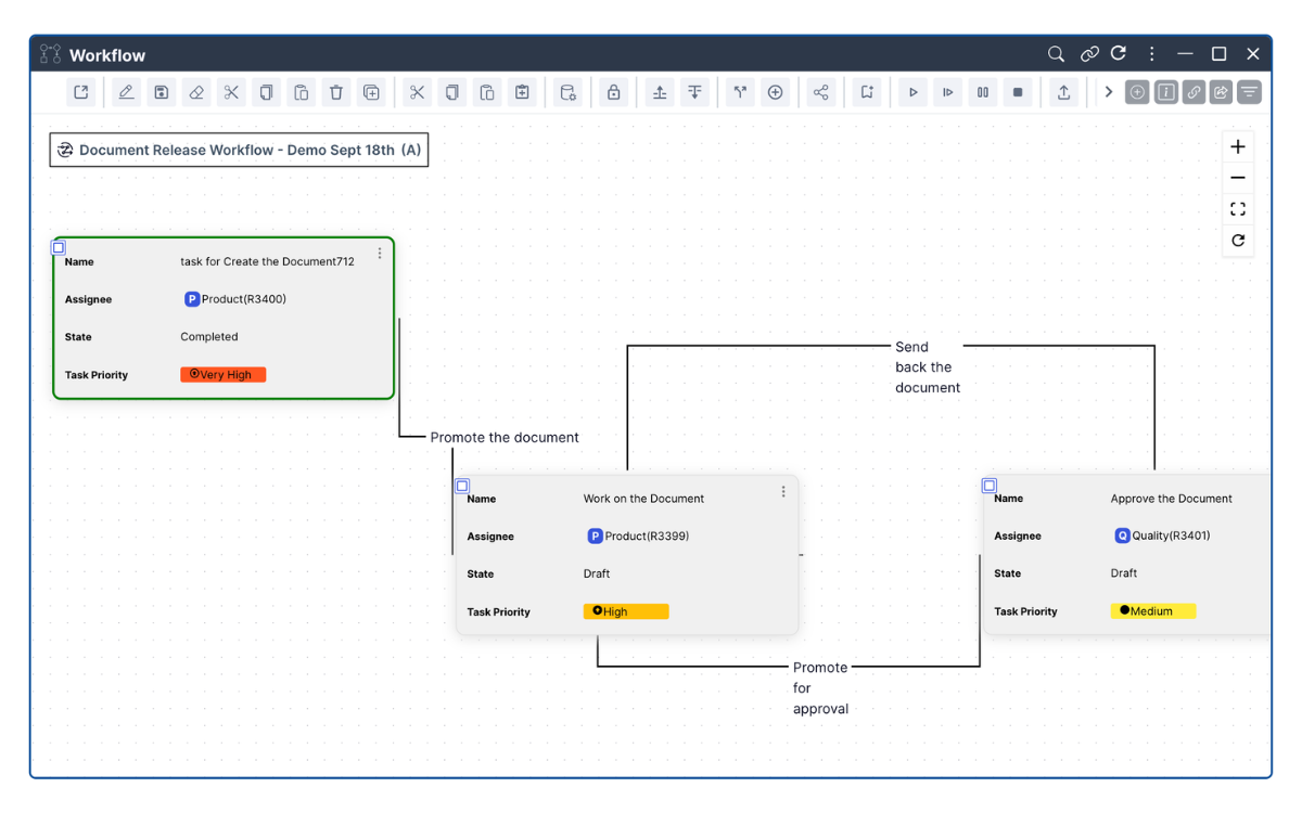 Each node can include specific rules, permissions, and triggers to keep workflows consistent and predictable. With clear visibility into task progress and state transitions, teams can monitor execution, resolve bottlenecks quickly, and maintain full process control.