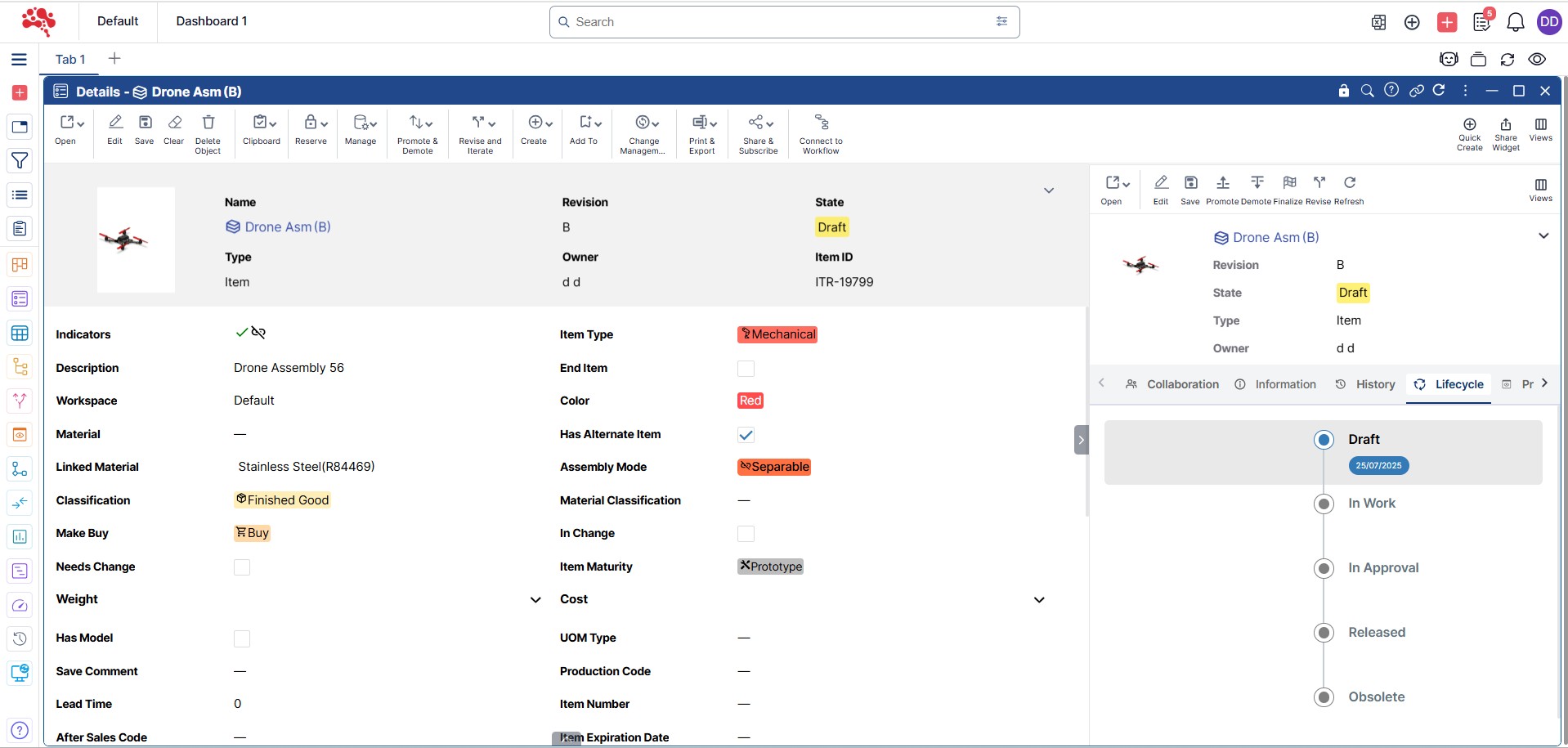 Unlock the full potential of the Details widget by going beyond basic viewing. Edit objects with ease, explore versions and iterations, track lifecycle stages, and manage relations—all from a single, intuitive space. It’s everything you need to stay informed and in control.