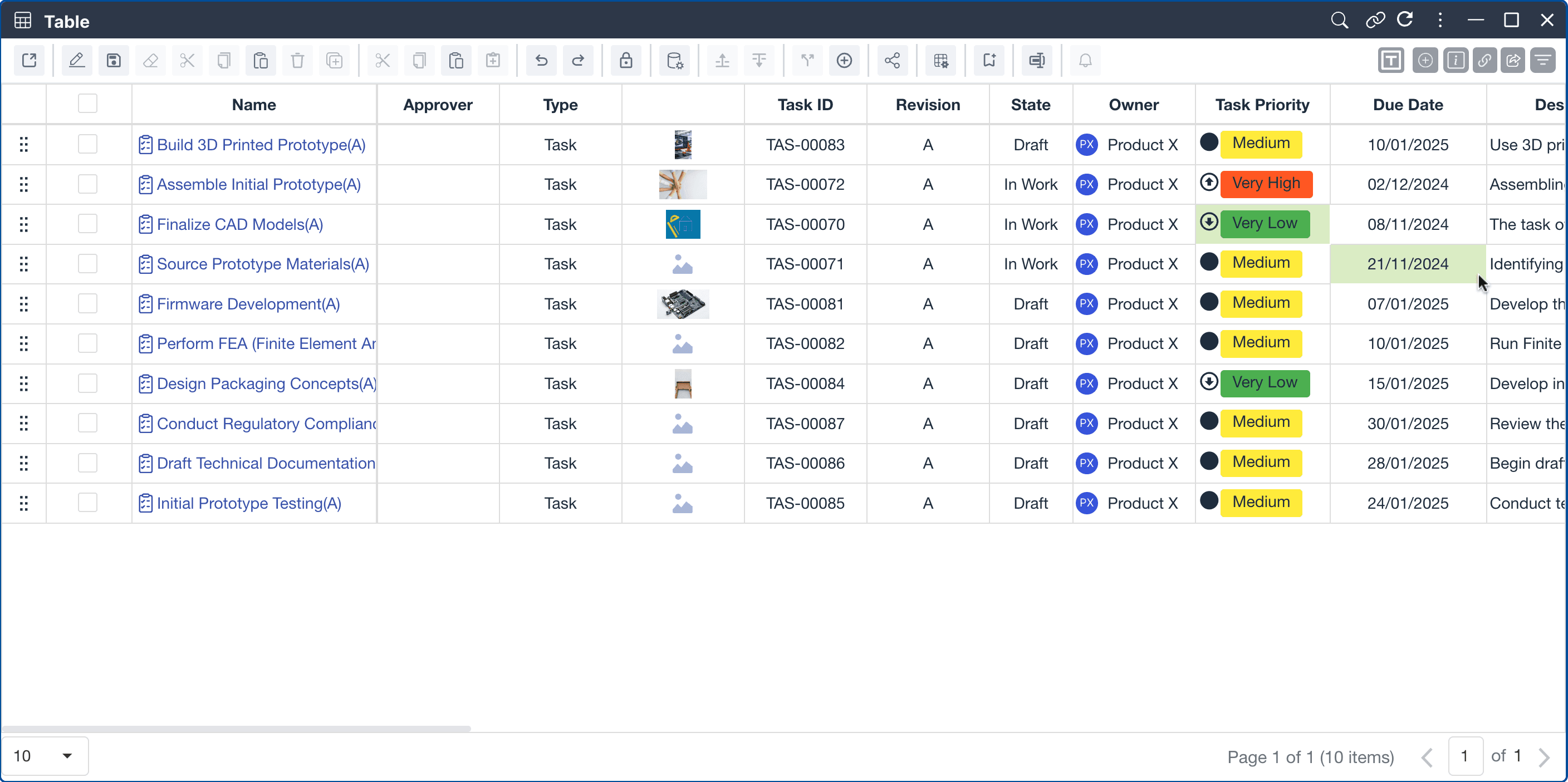 Nora IPLM’s Table Widget gives your team the power to make real-time edits and apply mass updates without switching context.