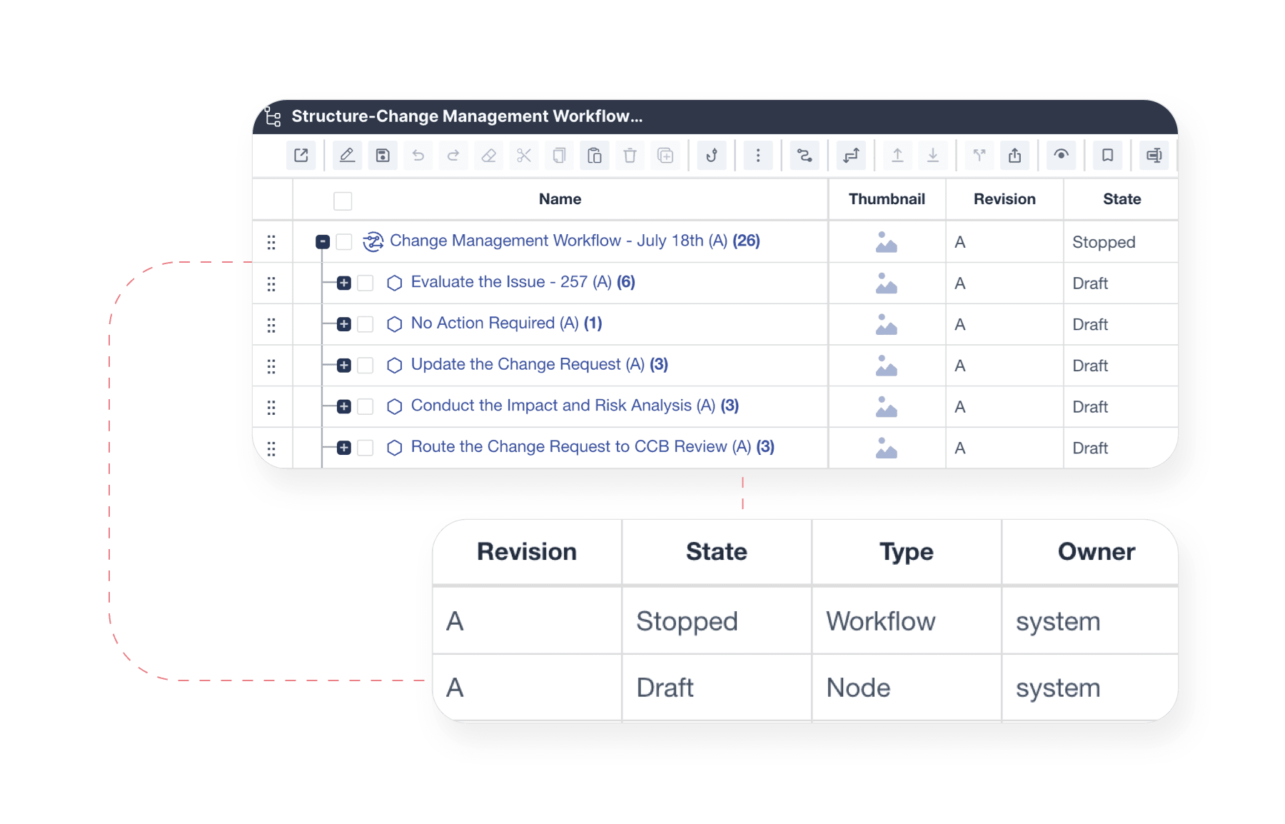 Link various objects such as items, documents, risks, and requirements with workflows for enhanced connectivity.