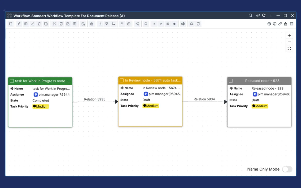 Design workflows that reflect your exact business needs using Nora IPLM’s highly flexible templates, logic rules, and branching capabilities. Whether you need loops, conditionals, or custom node properties, the platform enables you to visually build and refine workflows without complexity. This ensures consistency across your teams while adapting to different process scenarios.