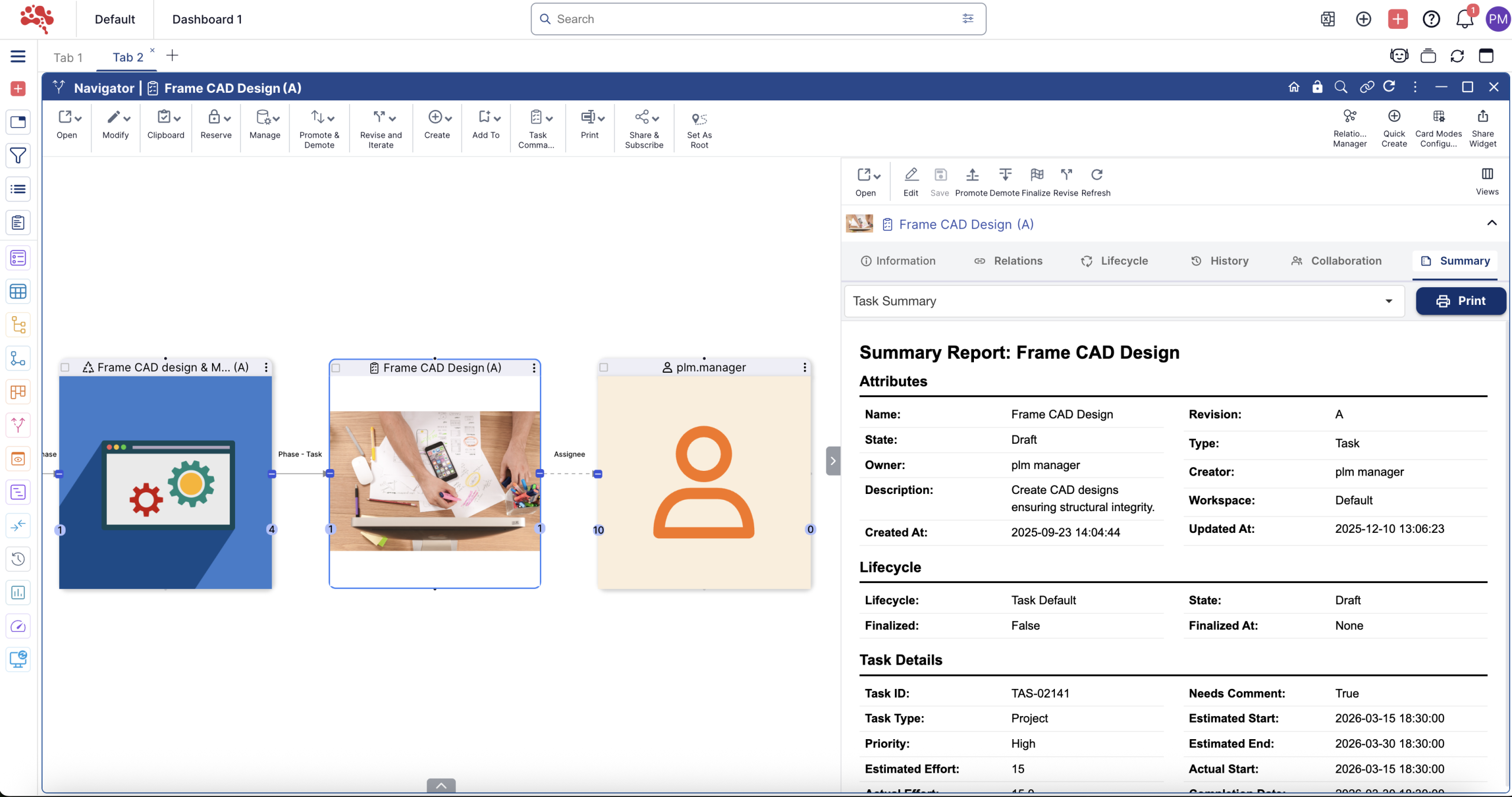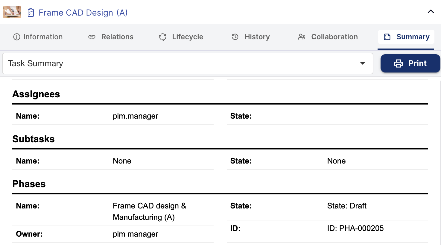 The Project Summary Report delivers a complete top to bottom view of any project including identity, lifecycle, ownership, scheduling, scope, reviews and its full network of related objects such as products, phases, programs, tasks, ideas and gates.