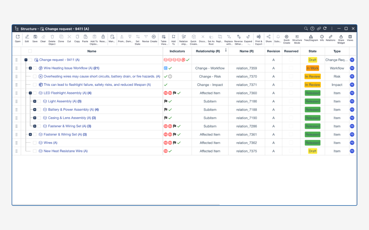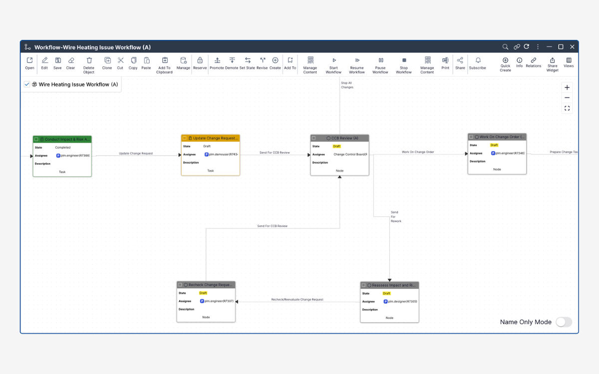 Automated Object Lifecycle Management for Engineering Change –Nora IPLM integrates engineering change management with lifecycle management, automatically tracking changes in affected items, issues, risks, and change objects. This maintains accurate, real-time updates across your engineering processes, facilitating smoother transitions throughout the change management lifecycle.