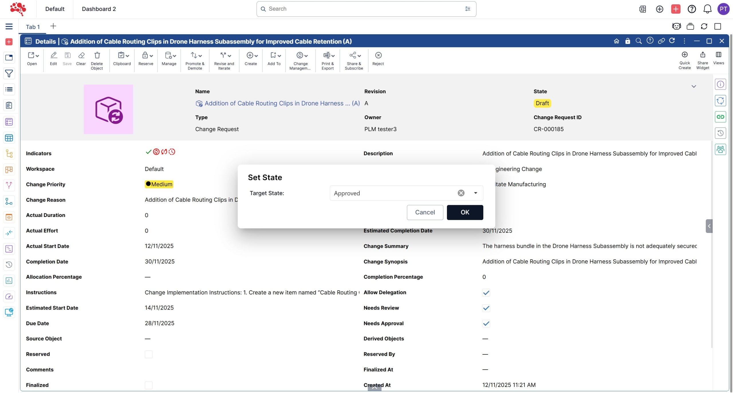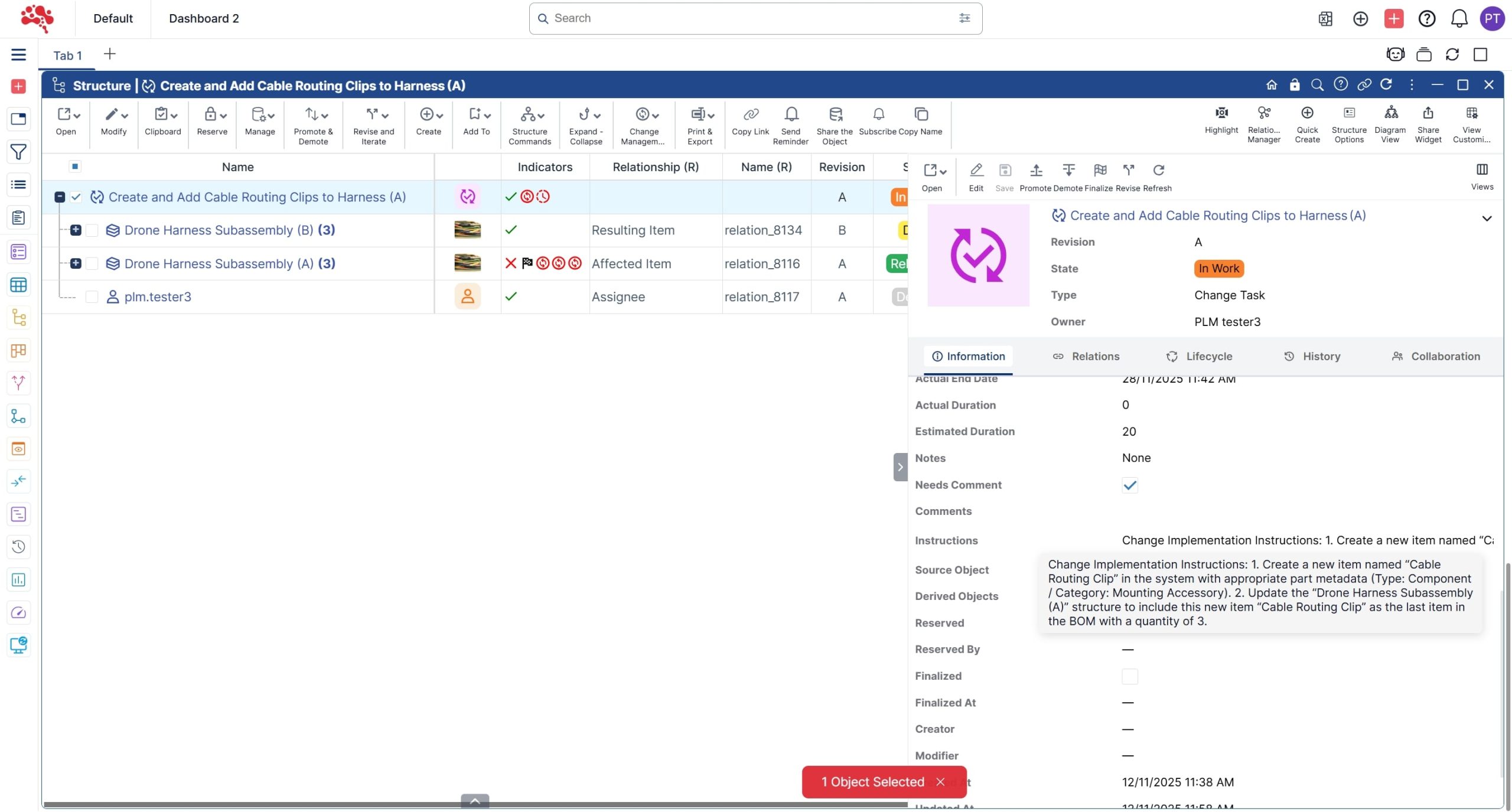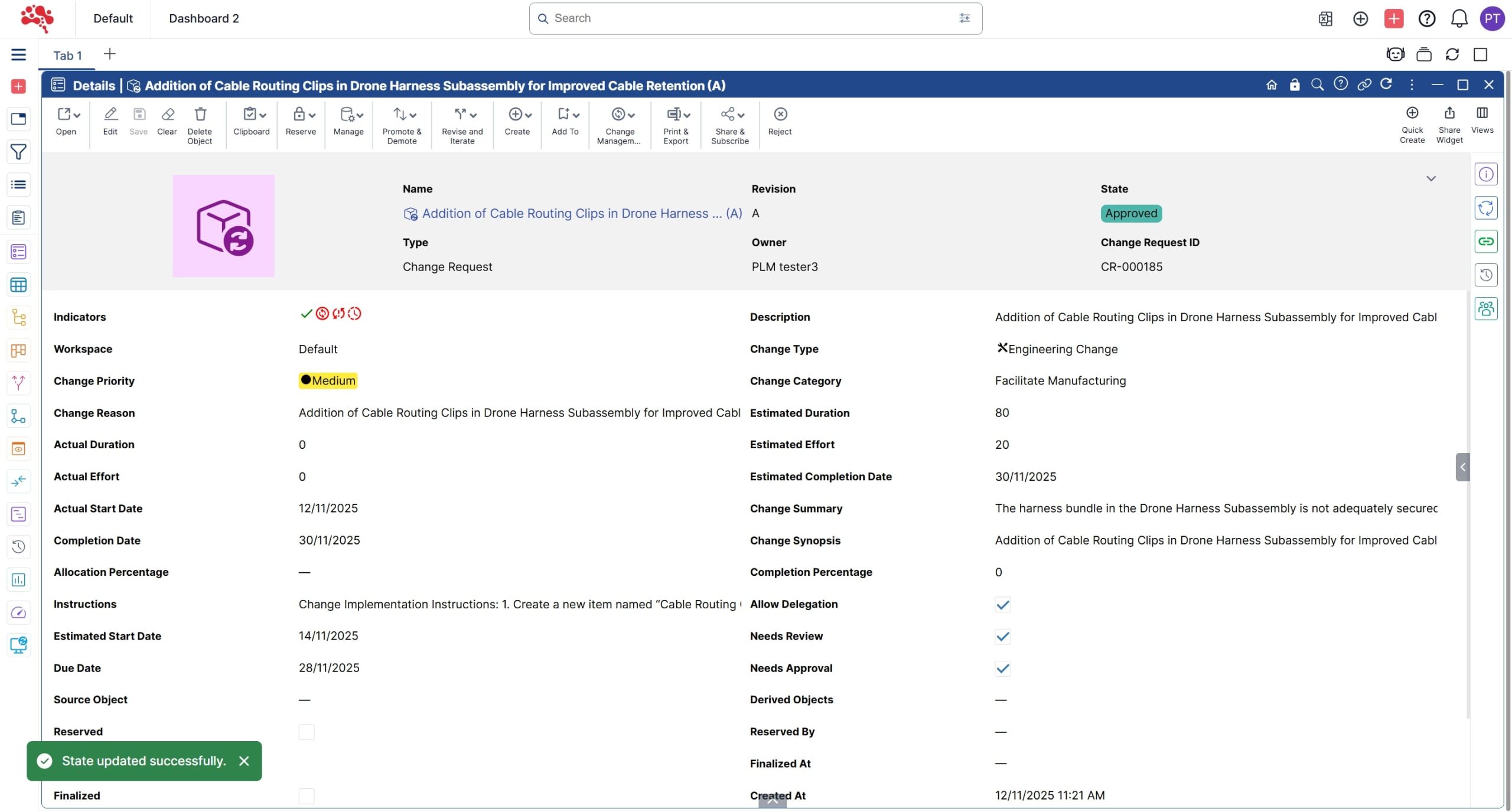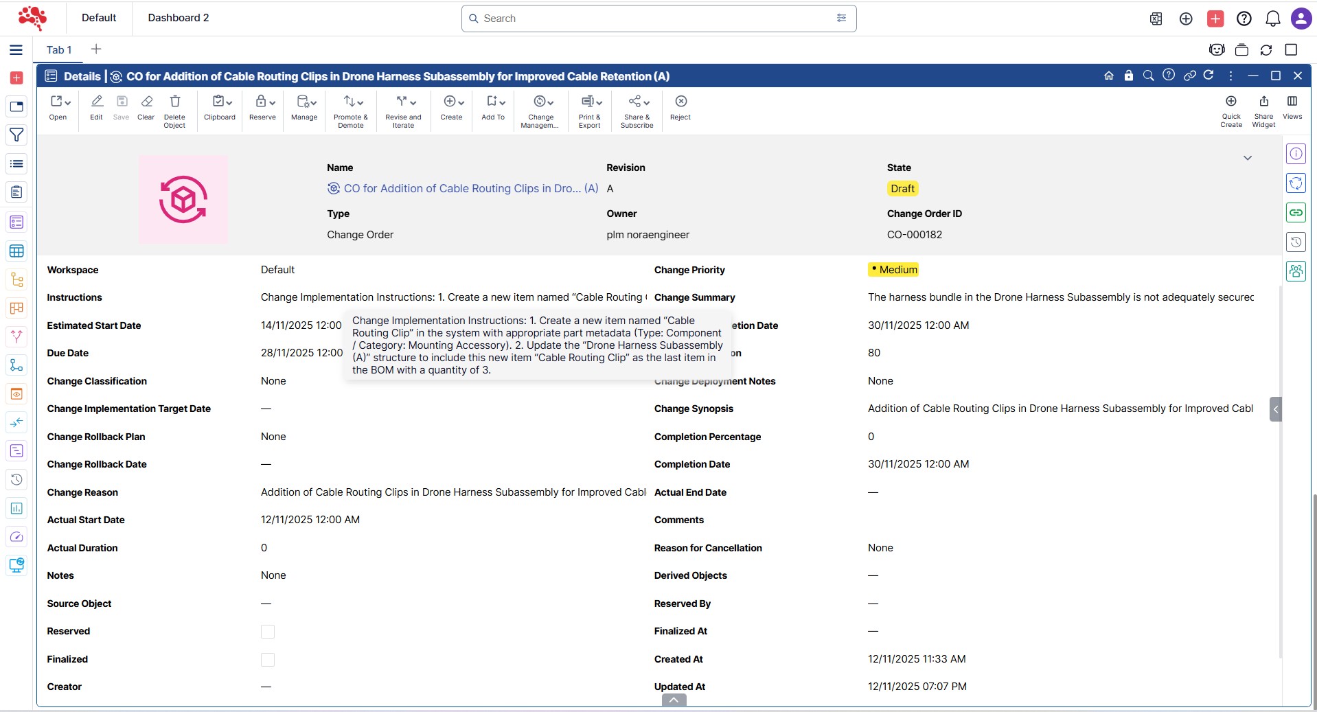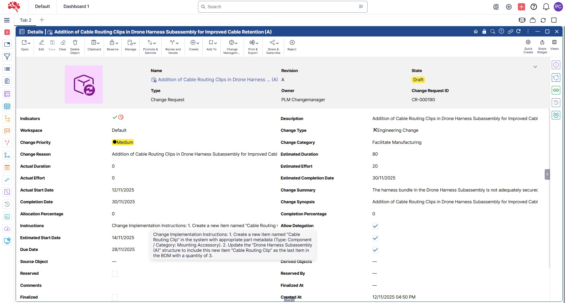In this section, you’ll learn how to approve a change request and generate a new change order, create and assign change tasks, work through updates, and ultimately complete the full change process. With structured workflows, version control, and built-in traceability, teams can assess impact, collaborate efficiently, and execute changes with confidence.