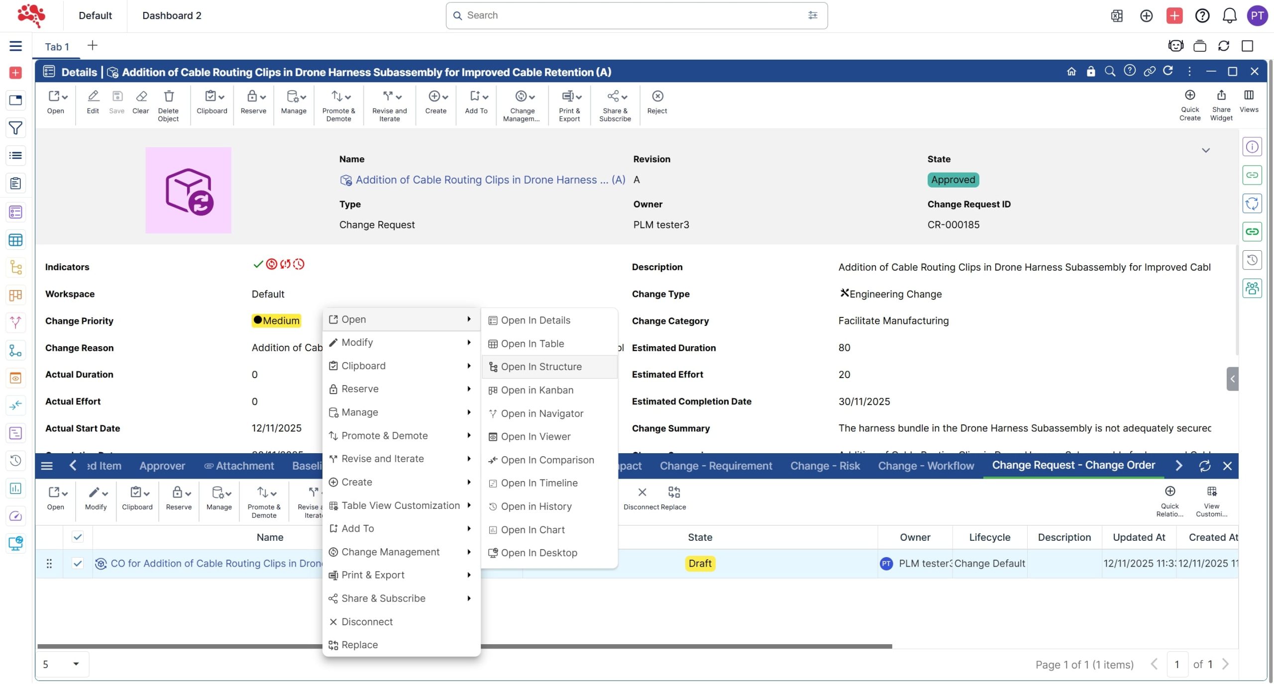 6. Right click on the Change Order and Click on “Open in Structure”.