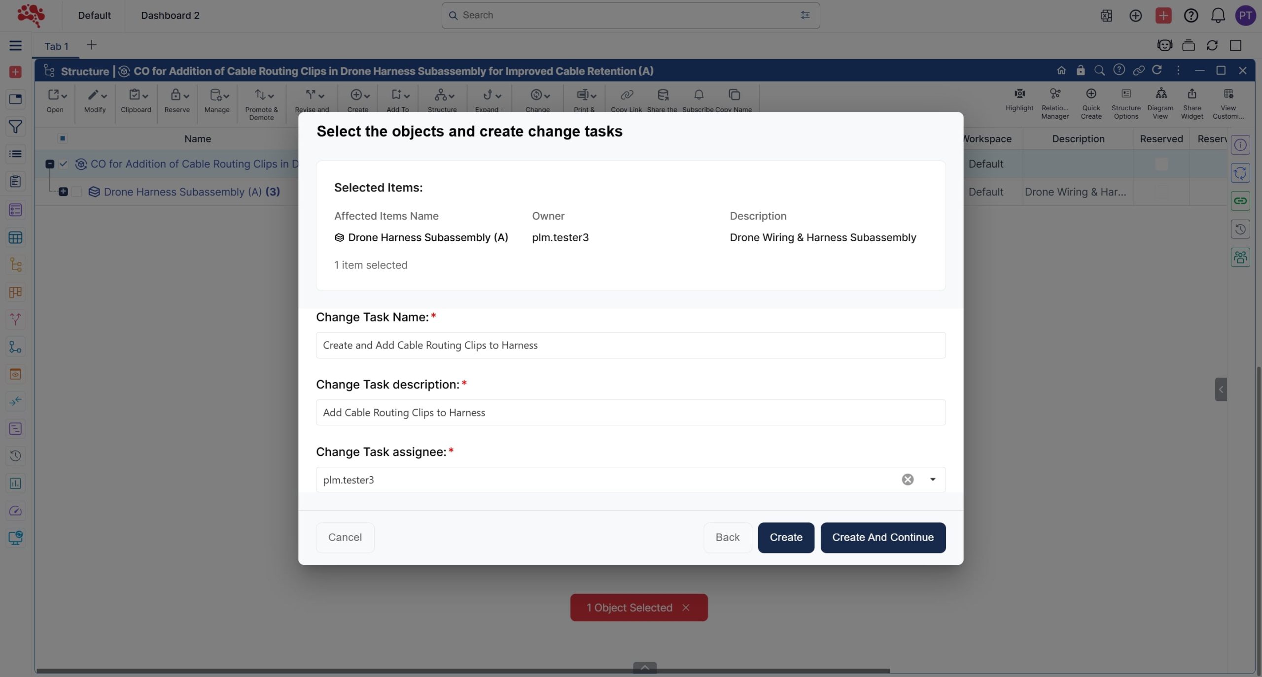 3. Add an appropriate Change Task name and description, select an assignee, and click Create to generate the Change Task.