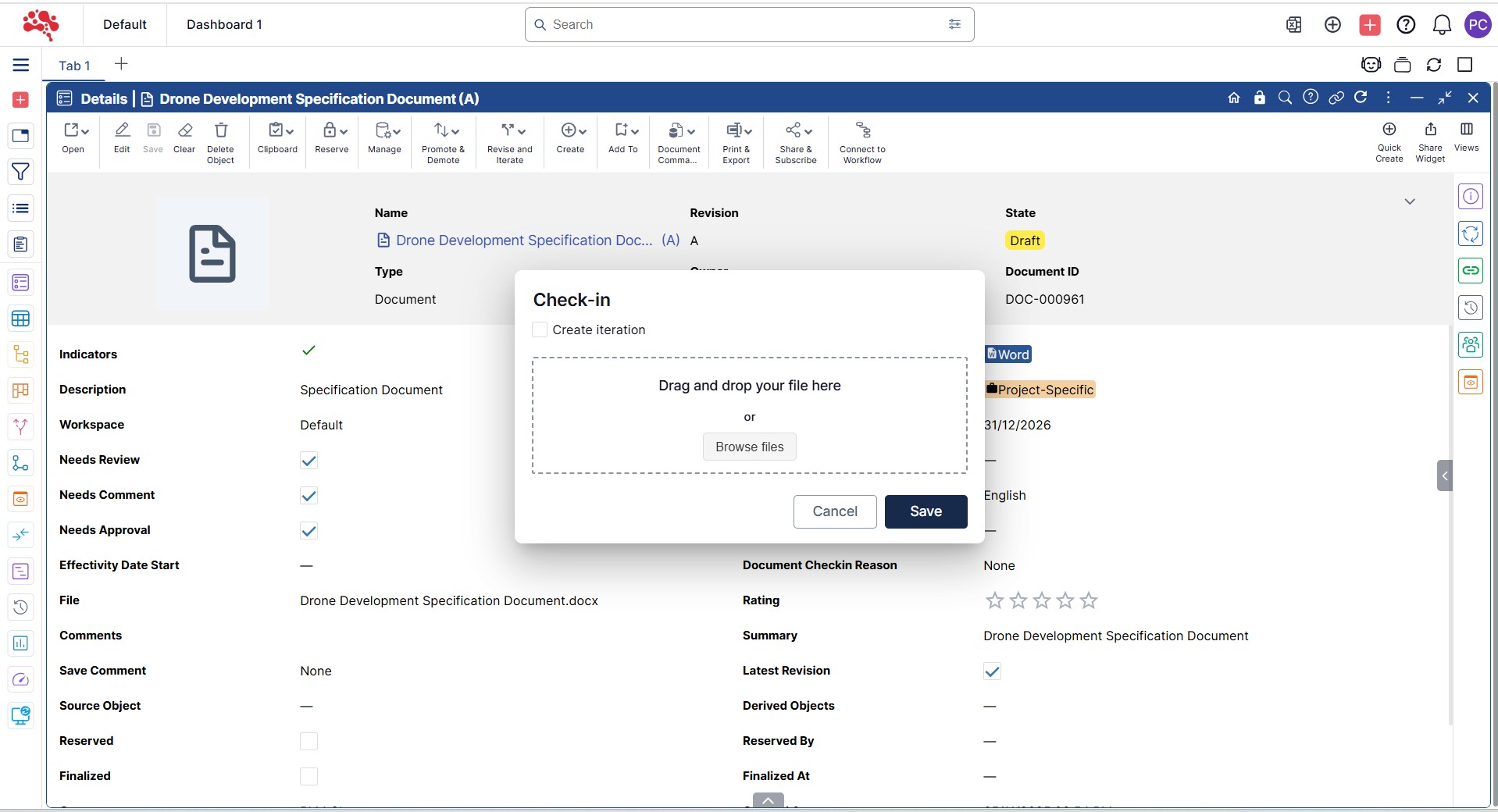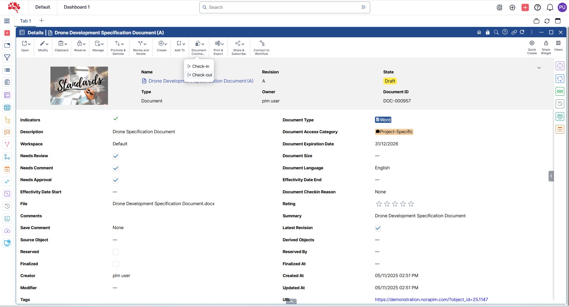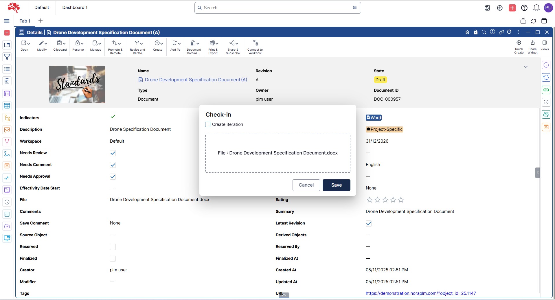 7. The document has now been successfully updated and checked back into Nora IPLM.