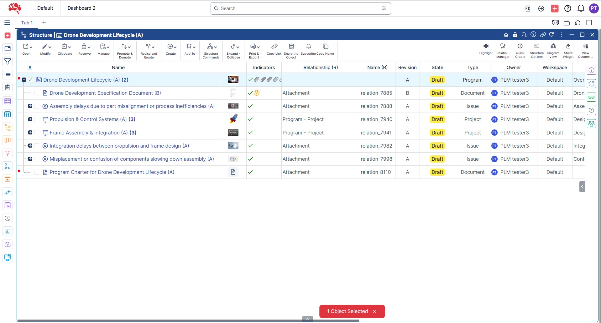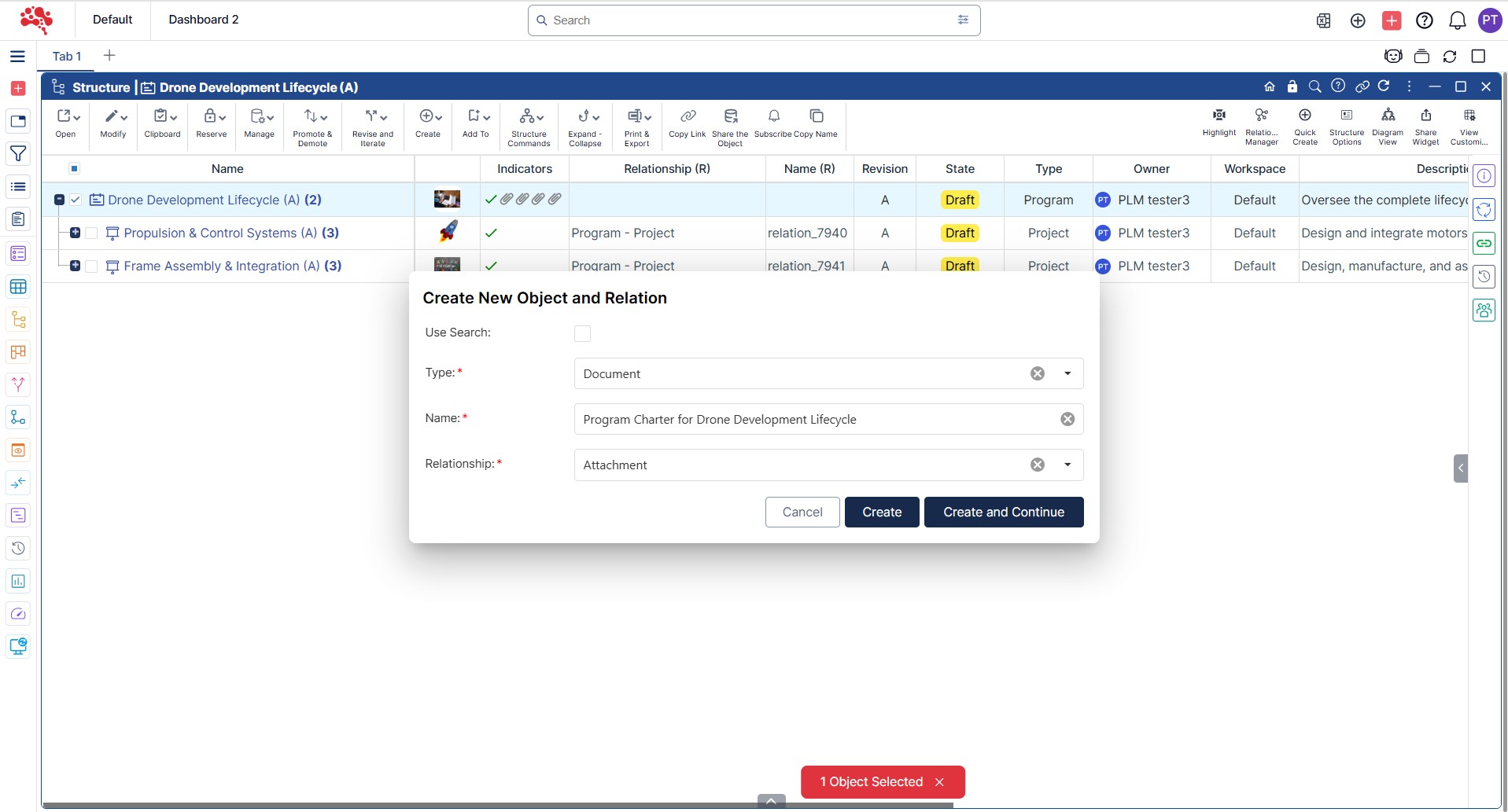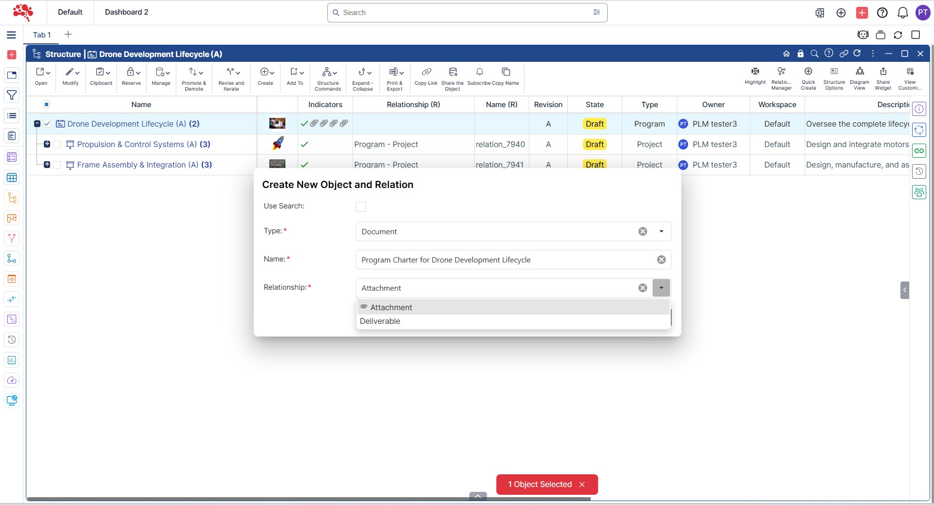 5. Update the Relationship Manager filter to display the associated document in the structure view.