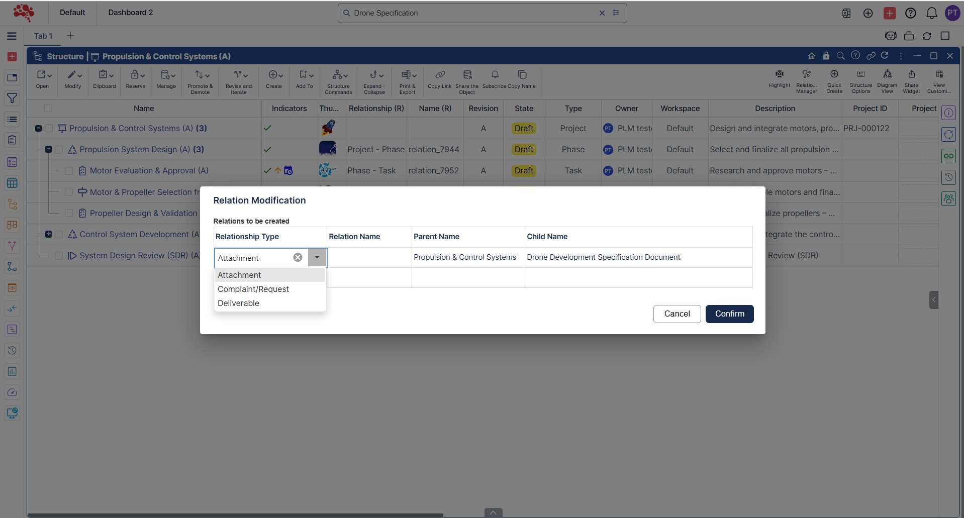 7. Similarly, a document can also be dragged and dropped to a Project, and the relation can be defined according to the document type.